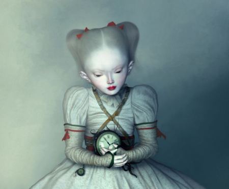 Fantasy, escapism, human cruelty and disguise are reoccurring themes explored within his dramatic narratives. Betraying the seemingly child-like innocence of the figures is their piercing, knowing gaze—exposing inner strength in contrast with their fragile physical appearance.