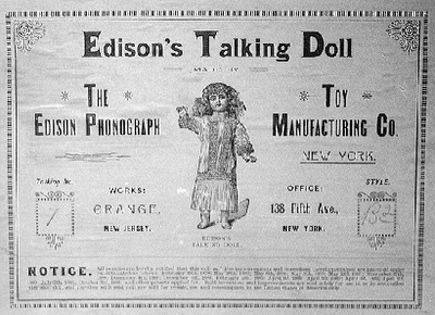 Baby Dolls of the past, pay homage to your predecessor: Thomas Edison’s talking doll, circa 1890.