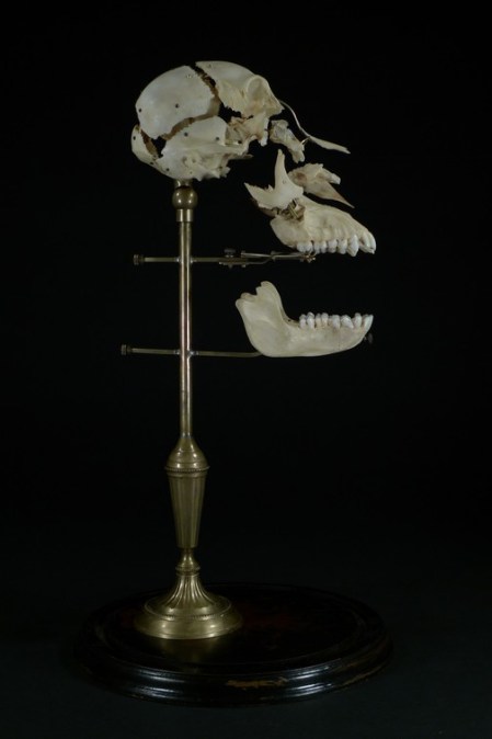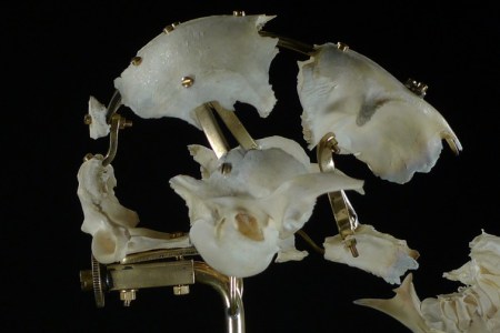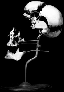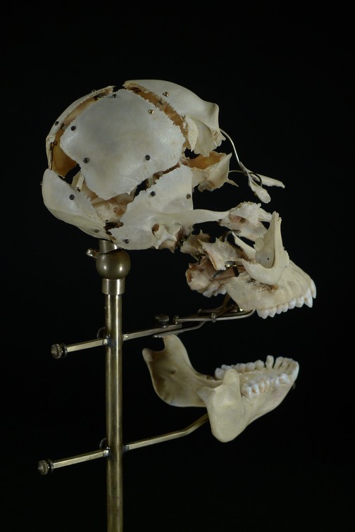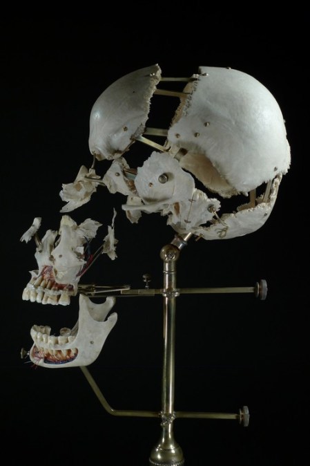 Years ago I came across a mesmerizing photo of a disarticulated human skull, cleaned and mounted on display with jointed movable parts. A little something like this:
