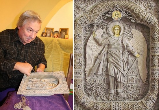 Vladimir Denshchikov, Ukranian theater actor and teacher, took up an incredible hobby after suffering a stroke in 2007: macrame religious scenes.