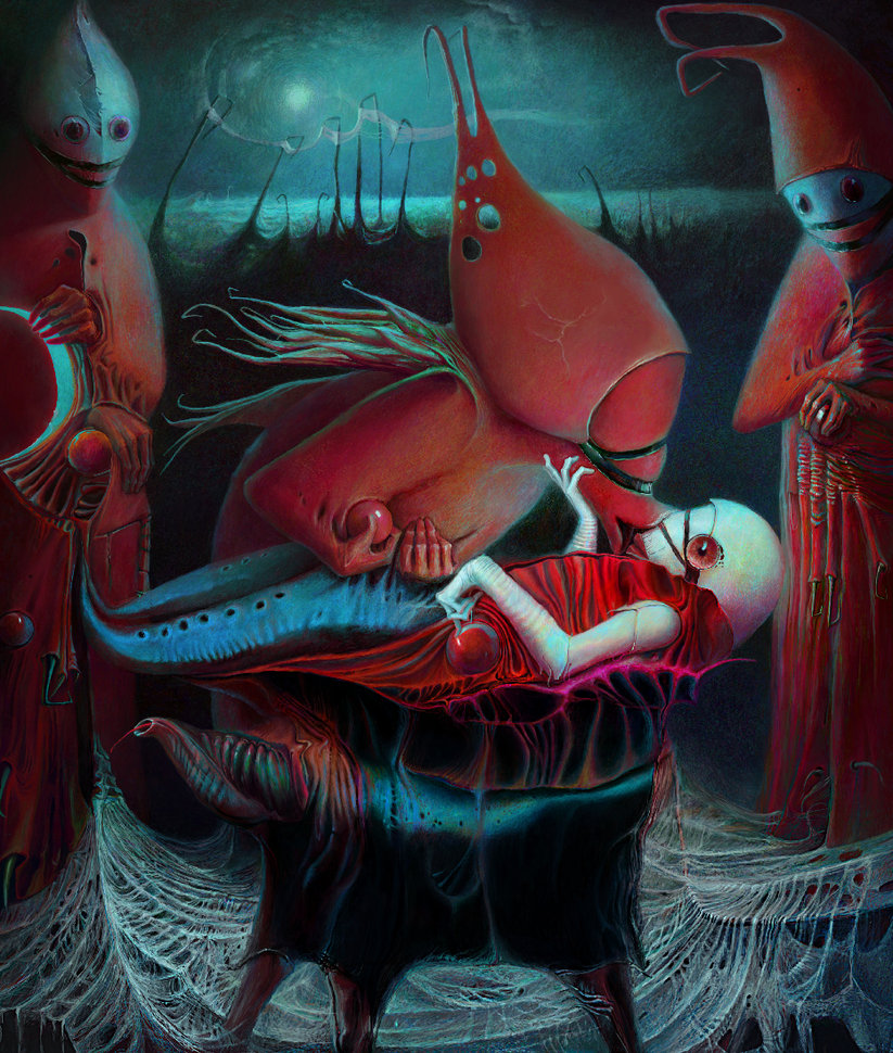 If Guillermo del Toro was having an acid trip about alien-shrimp life forms, I think this would pretty much nail it. So bizarre, I like it. The color schemes are great. That’s what’s awesome about digital art programs, there’s so much versatility to coerce your work to perfection and infinite pantones to create without wasting tubes of paint to mix eye-popping shades. But you still have to have talent, that’ll always be the deciding factor.