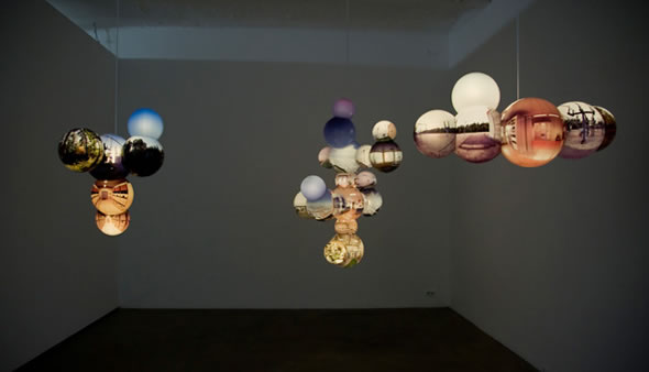 These spherical photos, vividly real yet oddly alien, are illuminated from the inside. I love the way pieces of tiny worlds are joined together in conglomerates that resemble molecular structures suspended in space.