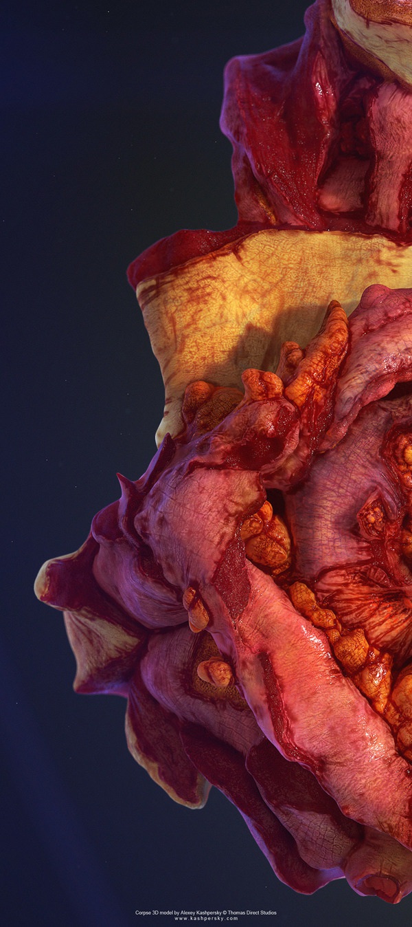 Alexey Kashpersky creates hyper-realistic 3D cadaver images using ZBrush, and the detail is extraordinary.