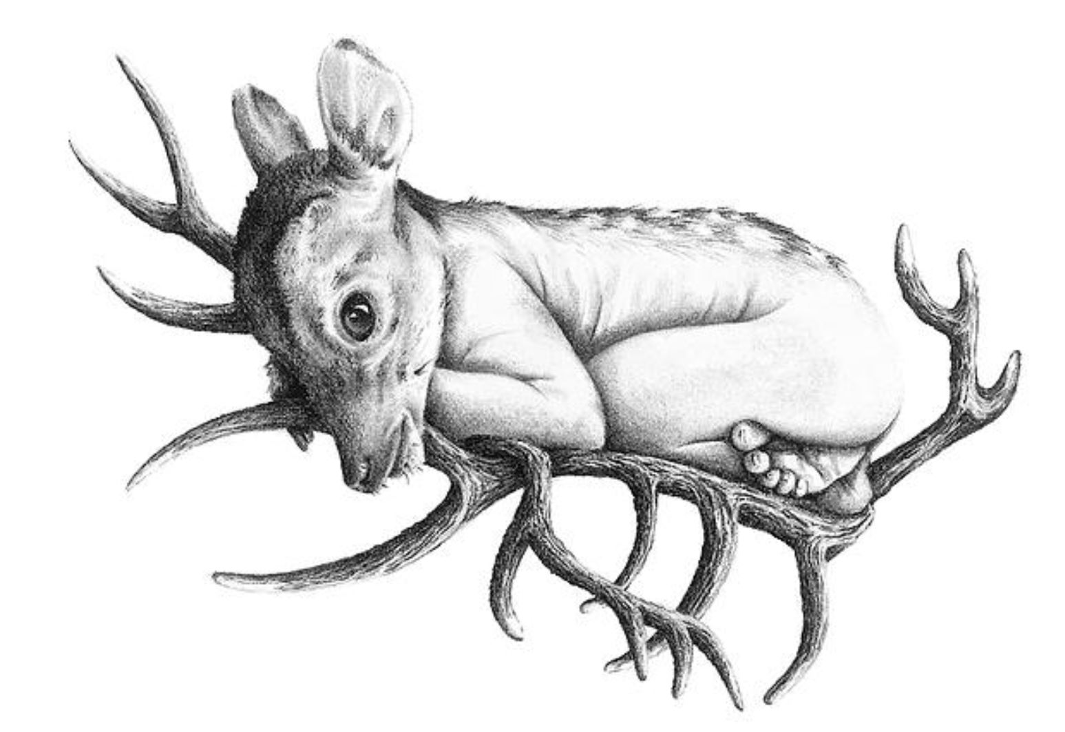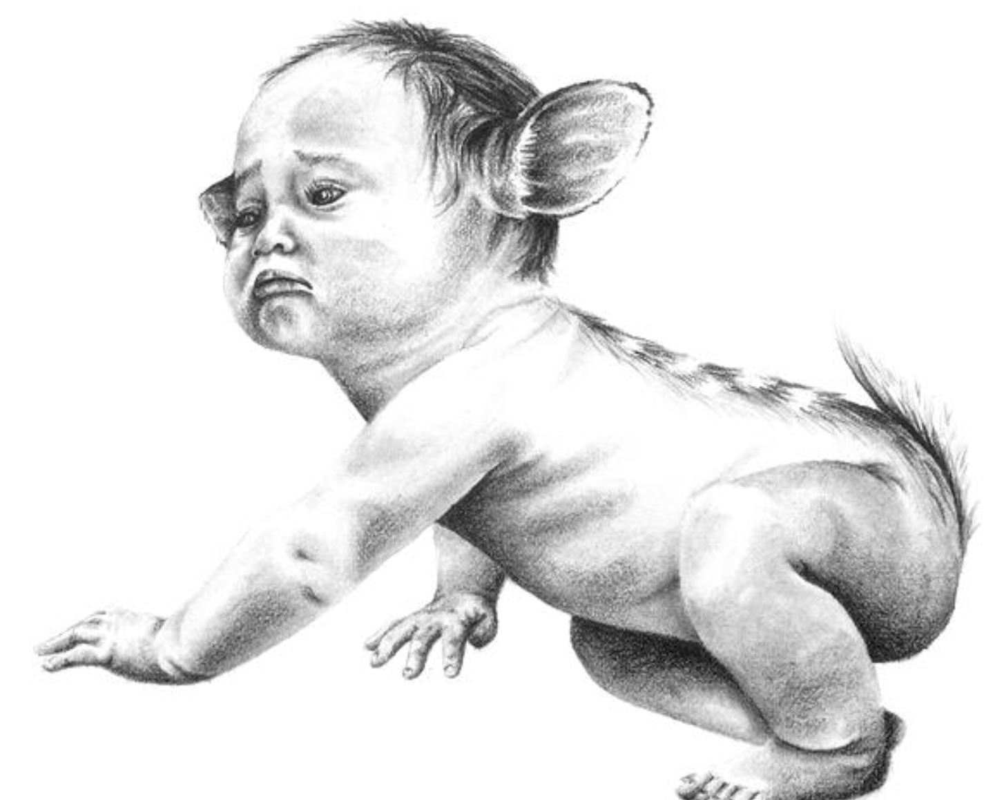 They create a palpable cognitive dissonance as cuddly human baby limbs seamlessly morph into animal parts. The faces silently speak of sadness, discomfort, and at times…peace.
