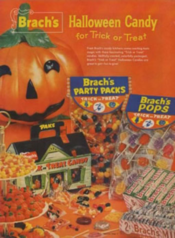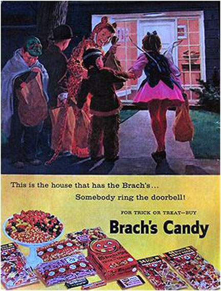 Last year in a discussion of Brach’s candy (sweetly nostalgic or disgusting?), under certain conditions, I agreed to re-sample the entire Brach’s collection to affirm or deny my extreme distaste for all-things-Brach’s. I believe I have since been released from this obligation, but I thought I’d dig up some vintage ads for your eyes to chew on…
