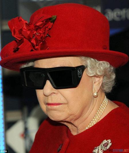 When I glanced at this photo, I really wished the queen were making a bold fashion statement. Turns out she was watching a 3D science presentation (which is arguably still pretty neat):