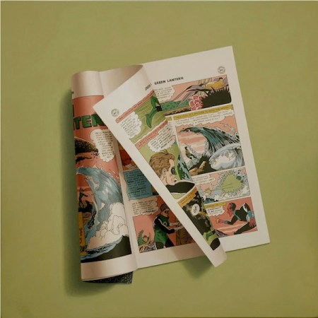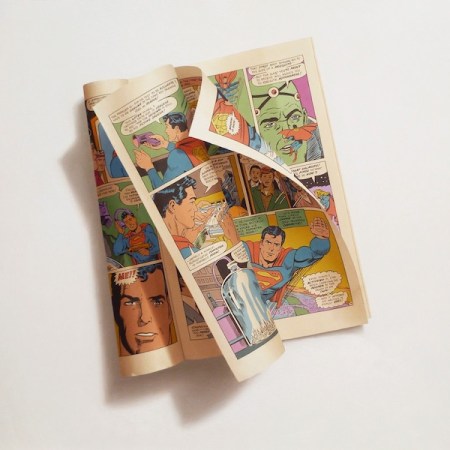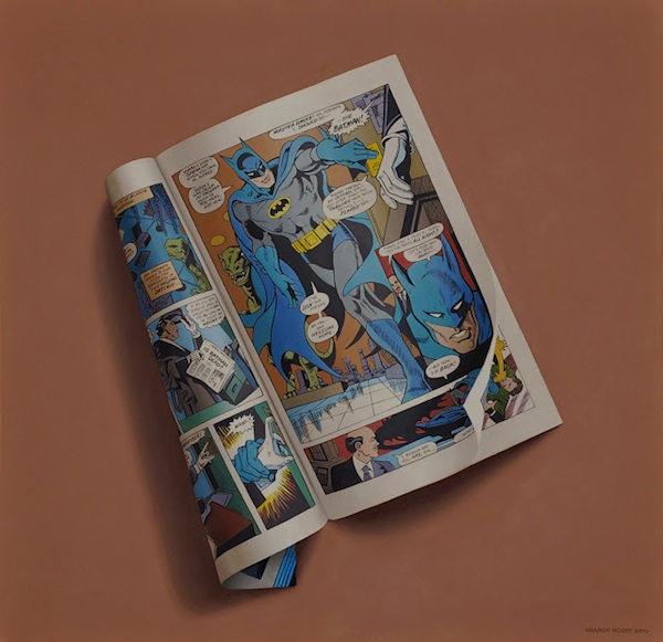 Can you believe this is one of Sharon Moody’s trompe l’oiel paintings? She has done a number of comic book pieces.