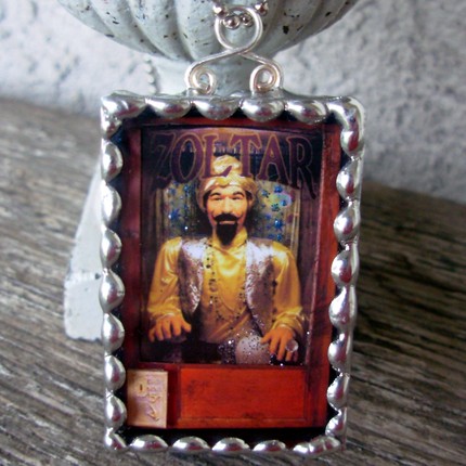 I’m really impressed with Jamie Noel’s hand crafted circus themed “interactive” jewelry. Look at what she does with the classic Zoltar fortune teller: