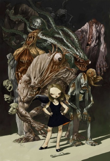I’m fond of the fact that a significant portion of these illustrations feature tiny girls and monsters monsters or zombies.