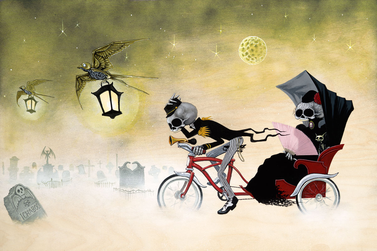 Edgar Hernandez is a Mexican mixed media artist with a wonderfully somber sense. His figures seem to come from some distant French town, where all is gloomy. Therein lies their charm and appeal. The song in the video gallery below will set the mood: