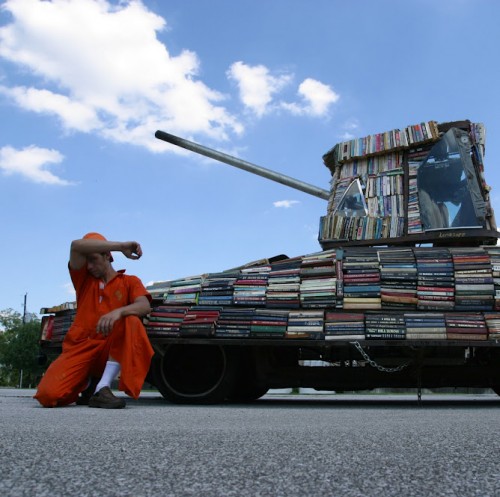 Raul Lemesoff converted a 1979 Ford Falcon into an awesome open-air tank bookmobile. He drives around Buenos Aires offering books to anyone who wants them. The Weapon of Mass Instruction, as Lemesoff calls it, promotes “peace through literature.” Lemesoff has already driven it to remote regions of Argentina and hopes to expand the project into other nations.