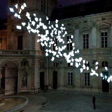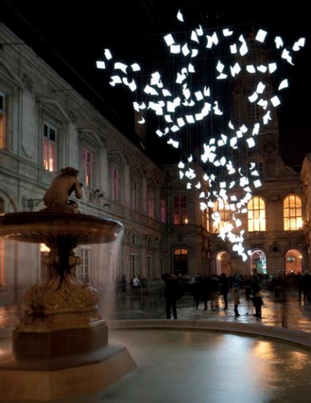 This installation was constructed in the courtyard of a Lyon hotel for the annual Fête des Lumières (festival of lights).