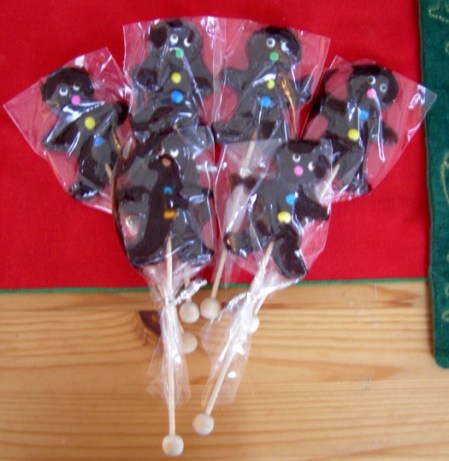 I dug out the holiday lollipops Louisa gave me last year, to find that they had been exposed to too much heat and had melted slightly. This only adds to their greatness.