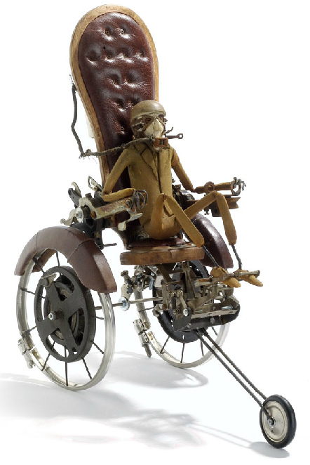 The oddly proportioned vehicles and chairs are splendid…