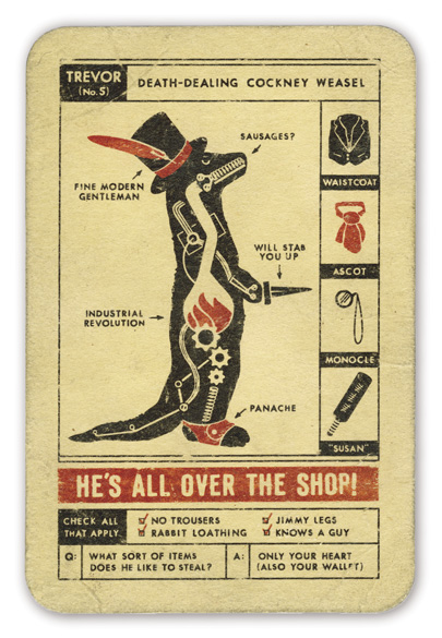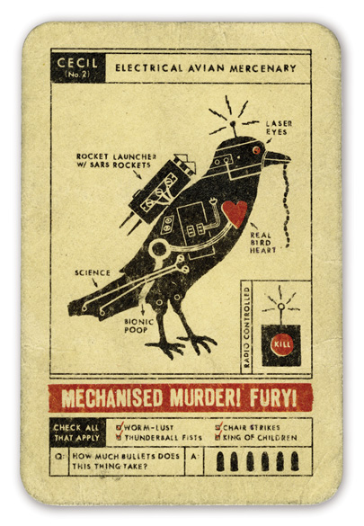 I love Ryan Abegglen’s mechanical beasts. The component parts in the diagrams are genius. Who knew these benign creatures could be mechanized murder beneath the surface?
