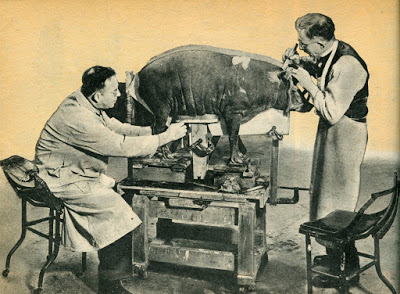 Phil Are Go! posted a series of images from a 1946 issue of Popular Mechanics that featured behind the scenes taxidermy. The captions containing the *ahem…cough, cough* “reproduced text” are hilarious.