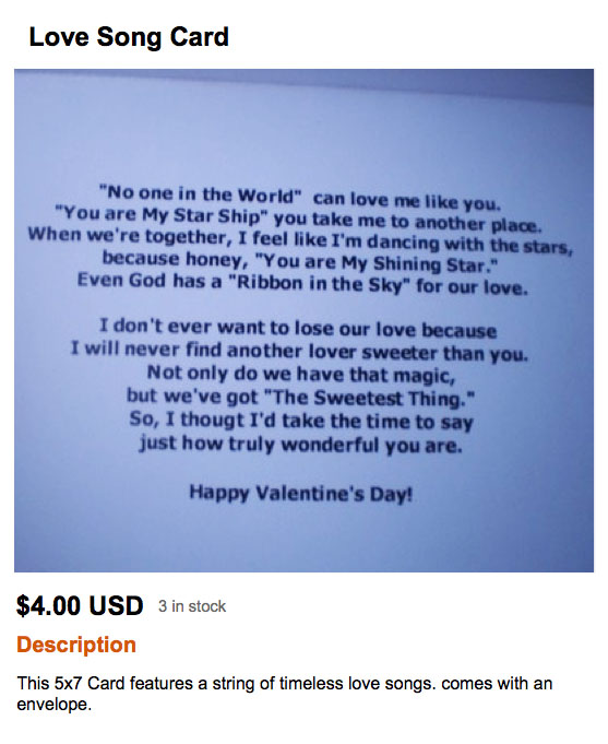I just remembered that I did “Love Week” on this blog last year as Valentine’s Day approached. Not sure why I didn’t think to do that again this time around (I do have some holiday oddities to post). But here’s a recap of last year’s highlights if you missed them: