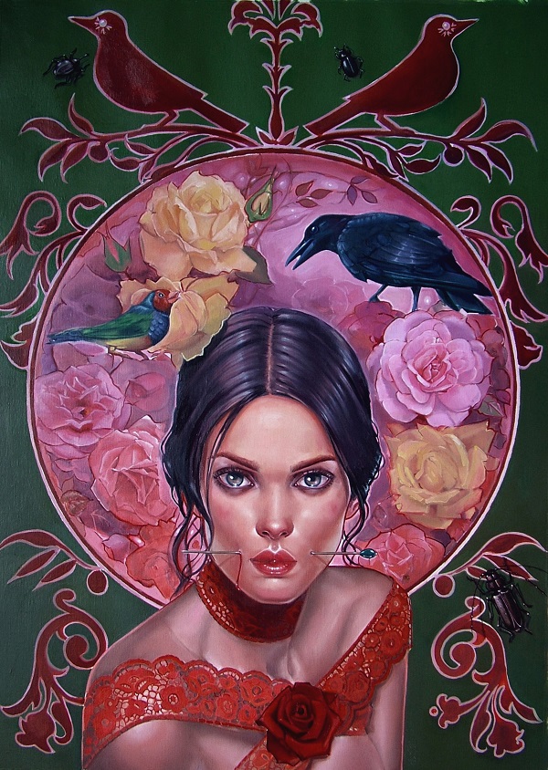 I have always been drawn to symbolic imagery, from ancient orthodox Icons to Tibetian Tankas, art that tells a story of the soul’s journey is of interest to me. Painters that have worked with symbolic elements such as the Pre-Raphaelites who’s paintings often depict mythological stories, and surrealists who delve deeper into psychological meaning, are what I study.