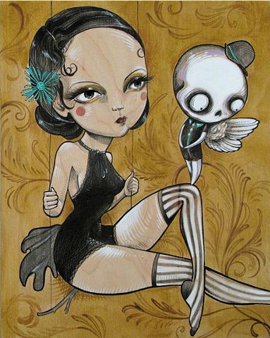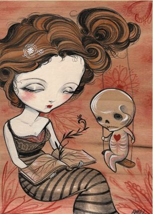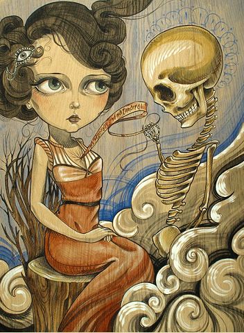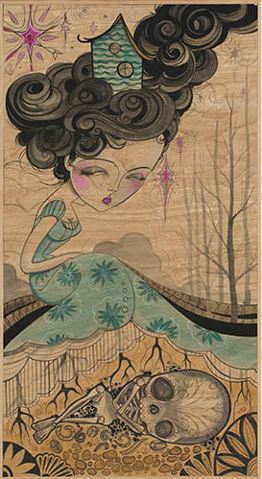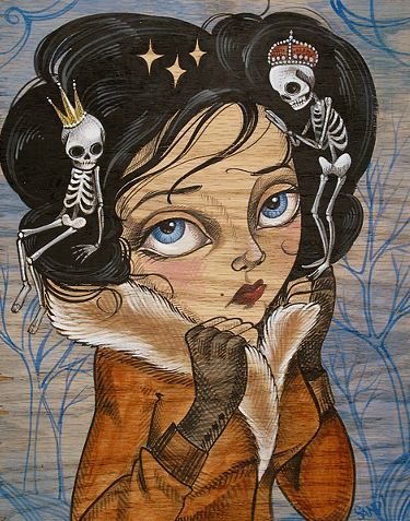 Sandi Calistro paints lovely girls…and even better, girls with skulls and skeletons.