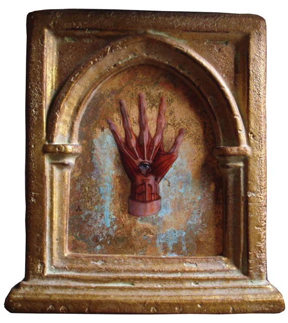 His Realist paintings remind one of Renaissance work, while he takes artistic liberty with thematic explorations (currently he is working on a series that depicts holy relics and images in detailed anatomical form).