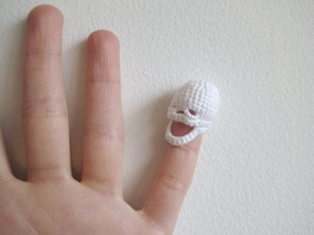 The Art of Darkness drew my attention to the wonderful crocheted skulls of Dewey Decimal Crafts.