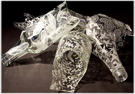 Back in September, I wrote about etched glass bottles left by a mystery artist. Now, her identity has been revealed!