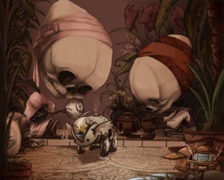 Termes transforms architecture, landscapes and fantastical worlds in his imagination to spherical representations. They hang in space and roate on a central axis, powered by motors.