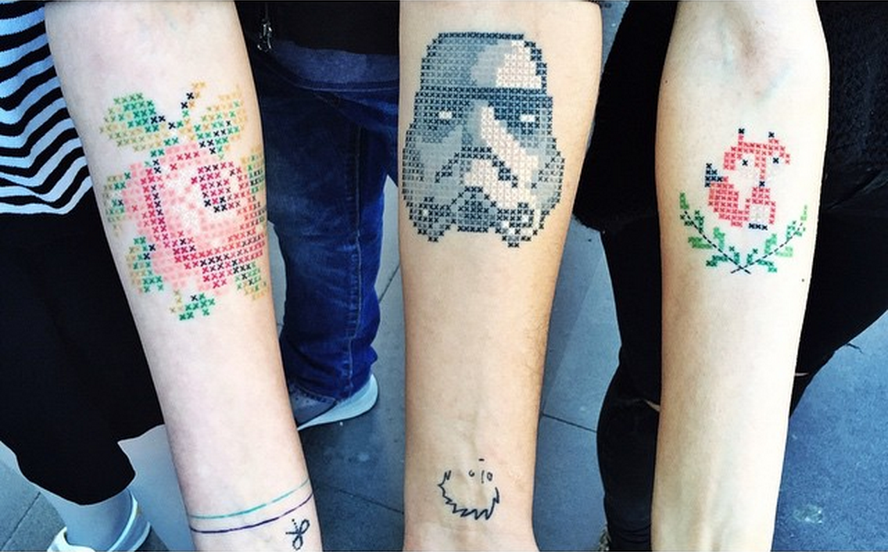 I first noticed her designs that mimic cross stitch patterns. Pretty great.