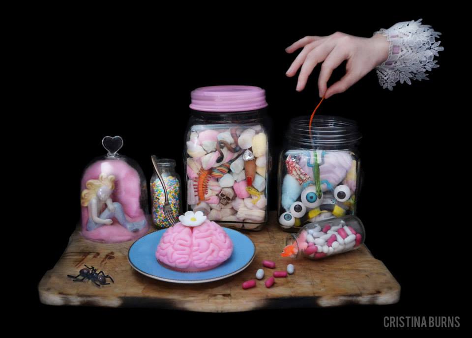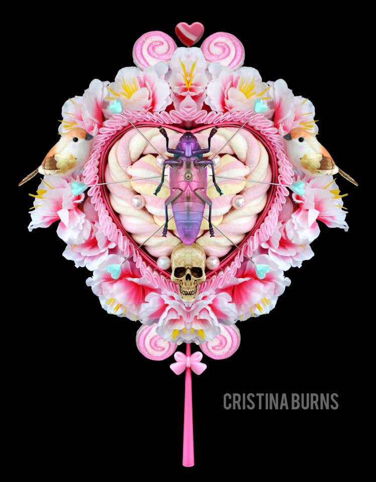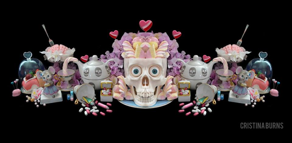 Garcia blends pop culture references with a satirical slant on modern society. Her layered, broken narrative paintings of wasteland fairy tales are influenced by William Burroughs’ cut-up writings and surrealist film, as well as vintage Disney and Fleischer cartoons, acting as critical commentaries on the failures of capitalist utopias.