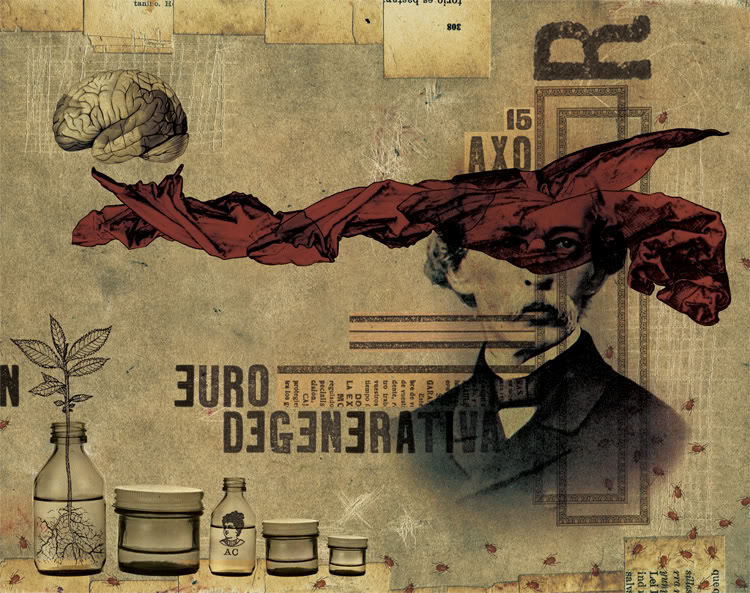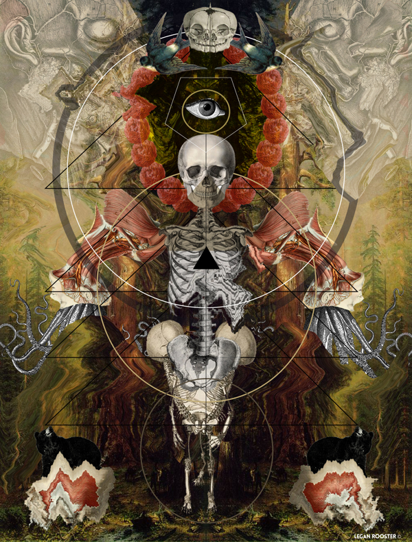 His sources range from vintage pulp art to fine art, and everything in between. Biology textbooks, nature picture books, the art of folklore and Americana…