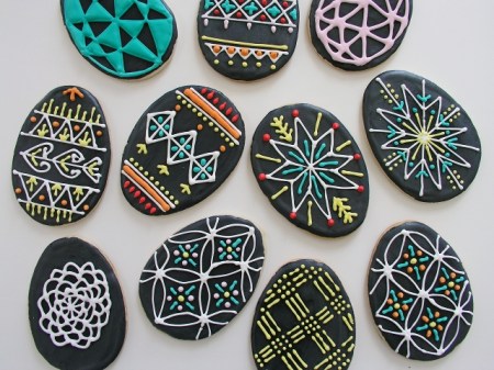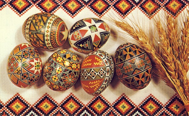 Pysanky are a Ukrainian tradition; eggs elaborately decorated using batik (dye resistant designs “written” in wax).