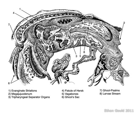 I have, at times, been known to invent body parts, but could never be quite so adept at illustrating them. I cannot wait to get my hands on this and lose myself in the “physio–psychomological quandaries” of the Shadow Self made flesh.