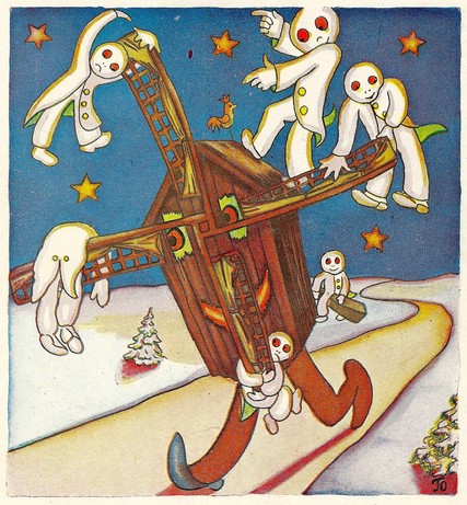 As long as we’re on the subject of books today, Monster Brains has posted some very unique illustrations from the Belgian Christmas book The Wonderful Journey Of A Christmas Tree dated 1943 by author Joseph C. Boon.