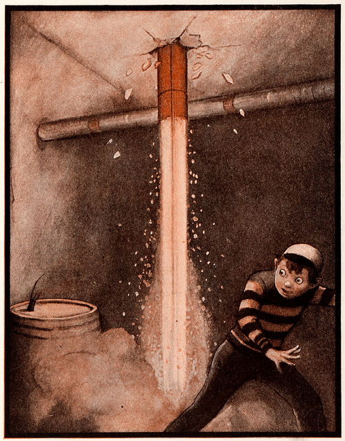 BilbliOdyssey recently featured a rather unique children’s book in which a rocket blasts through each scene.