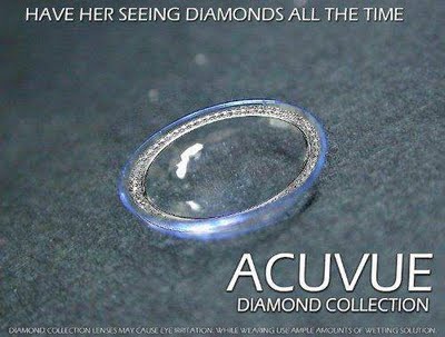 Oh humans…how you entertain me with your adornments. I do recall rumors about Acuvue’s diamond contact lens a while back: