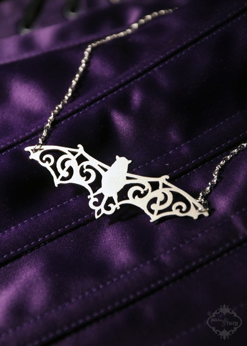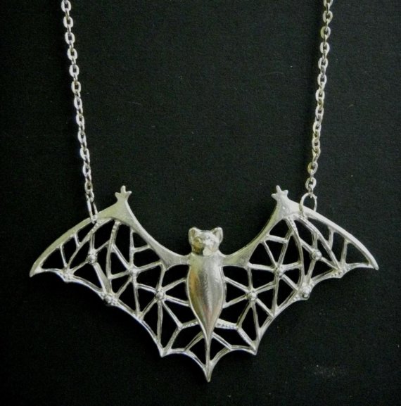 Browsing Creatures from El inspired me to see if anyone was selling filigree bat jewelry on Etsy. Not filigree backings with bats attached…but intricately carved wing designs.