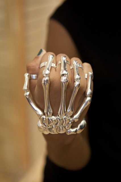 Most jewelry items contain sterling silver castings of bones, claws and other oddities.