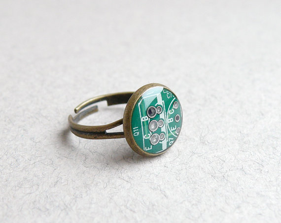 ReComputing has a series of wonderful pieces made from cut circuit boards and various geeky bits.
