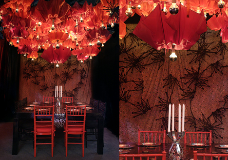 I’m sure I have a ton of less-than-functional umbrellas lying around the house, but I never quite thought to do this with them. Interesting lighting fixture…