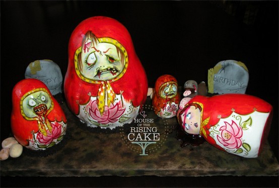 This gets major points for being two things: 1) zombie nesting dolls 2) A CAKE.