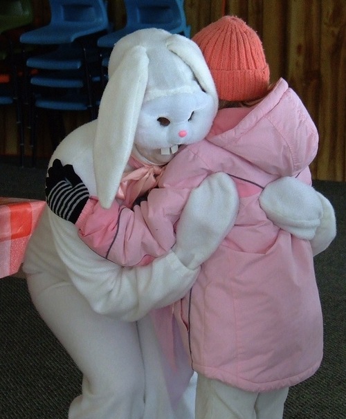 Bunny is dressing up his taxidermy human again.