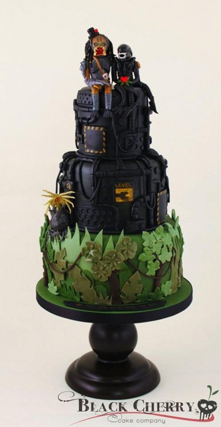 Let’s not nitpick about the unlikelihood of Alien and Predator joining in wedded bliss (I know you were thinking it, sci-fi geeks!), and just enjoy the fine craftsmanship of the cake.