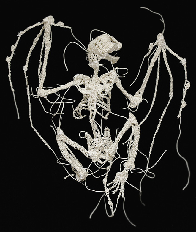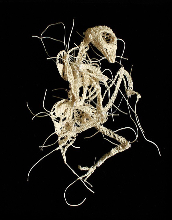The stray strings add to these pieces, as if they impart a kind of natural disarray or decomposition. Beautiful.