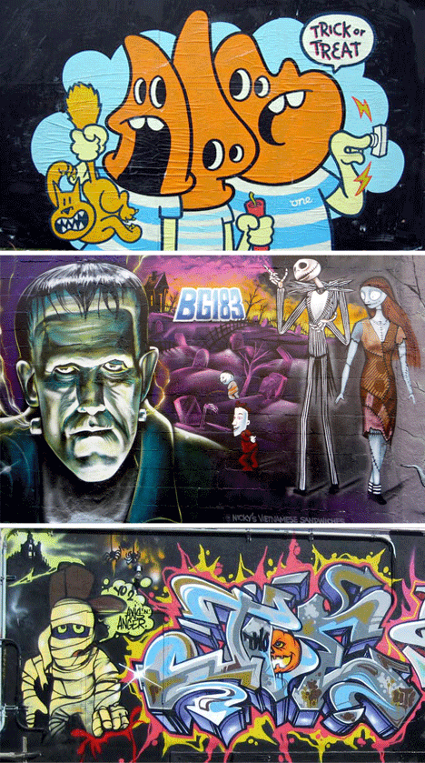 Web Urbanist rounded up some examples of Halloween inspired street art and assembled them into neat little collages.