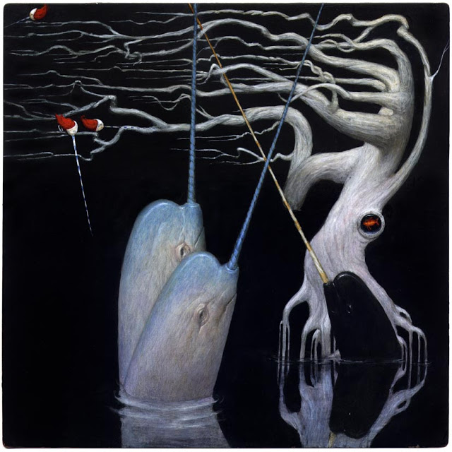 I love how he combines cross hatching with sweeping strokes and intricate surreal detail.