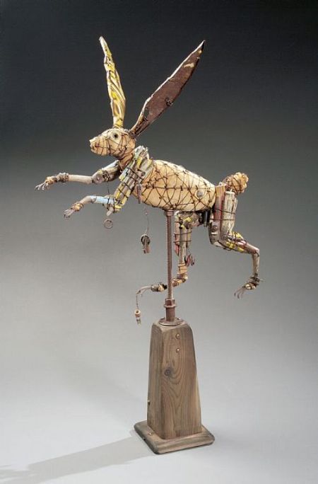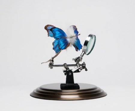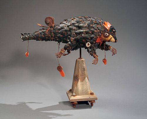 Geoffrey Gorman’s “Creatures of Curiosity” are made from wood, metal, cloth, foam and found objects, but I may attach the “taxidermy” tag because it feels fitting.