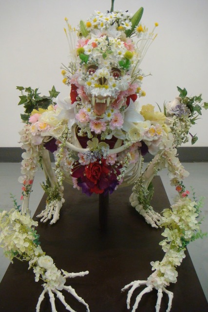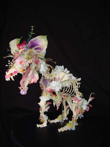 It’s amazing, the new festive air a skeleton takes on when bedecked with colorful organic materials.