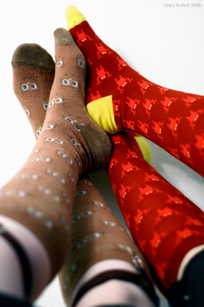 Things I Will Never Outgrow # 32104: Cheesy pixel art. Call it a quirk, nostalgia, or straight-up geekery, but I pretty much adore anything with a pixelated robot on it. Hence my craving for these socks.